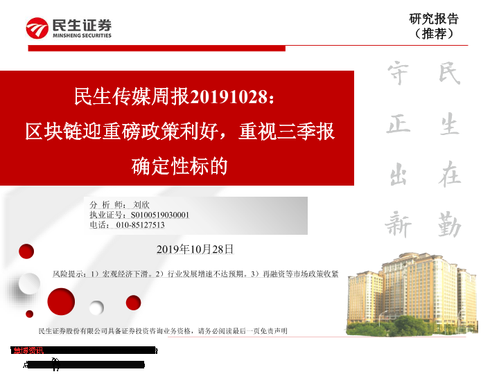 【民生证券】【20191028】民生传媒周报:区块链迎重磅政策利好,重视三季报确定性标的-19页