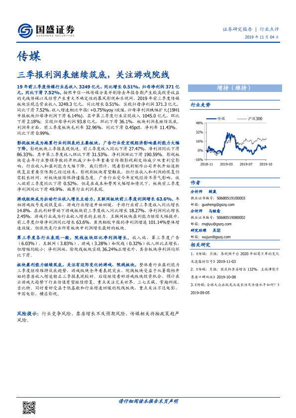 【国盛证券】【20191104】传媒:三季报利润表继续筑底,关注游戏院线-9页