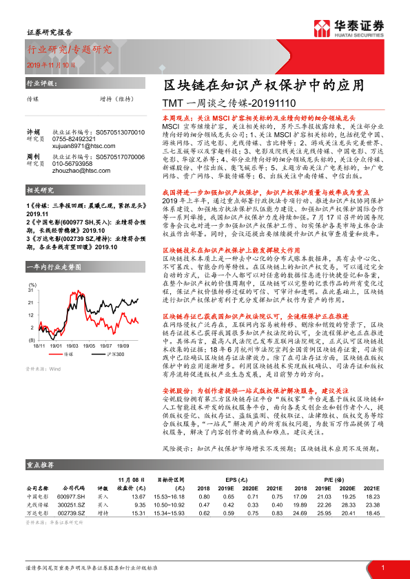 【华泰证券】【20191110】TMT一周谈之传媒:区块链在知识产权保护中的应用-12页