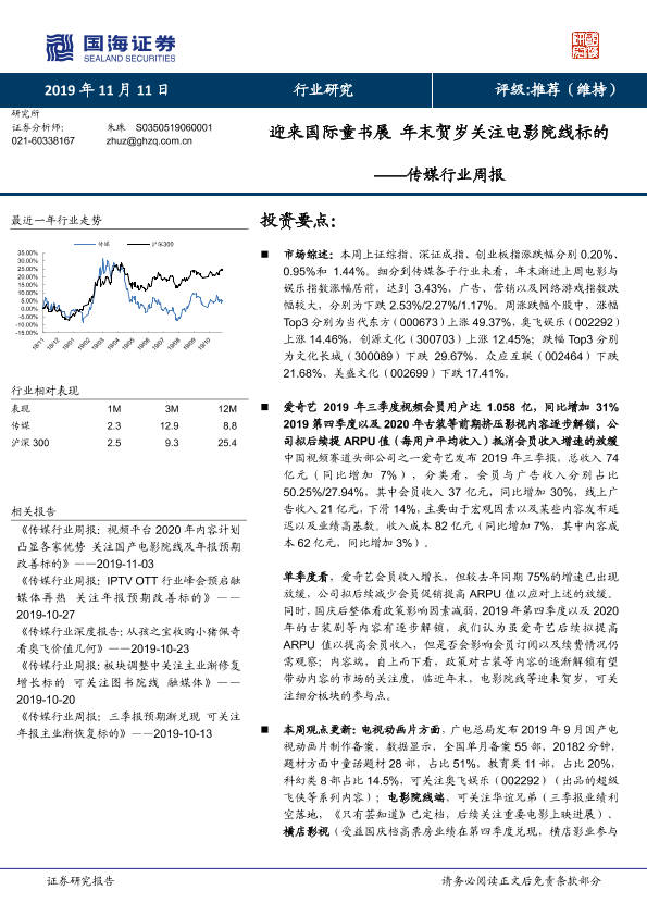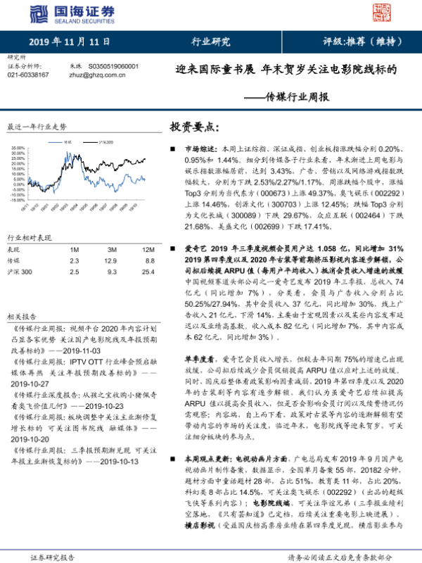 【国海证券】【20191111】20191111-国海证券-传媒行业周报:迎来国际童书展 年末贺岁关注电影院线标的-17页