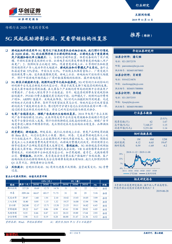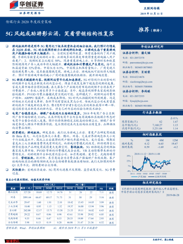 【华创证券】【20191111】传媒行业2020年度投资策略:5G风起或助游影云涌,笑看营销结构性复苏-44页