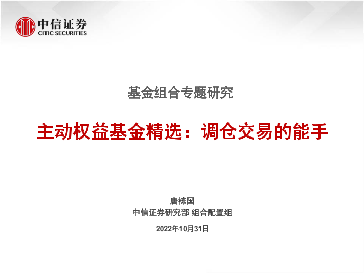 【中信证券】【20221031】基金组合专题研究:主动权益基金精选,调仓交易的能手-27页
