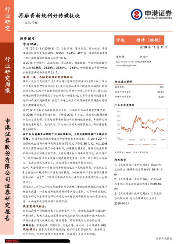 【申港证券】【20191111】文化传媒行业研究周报:再融资新规利好传媒板块-23页