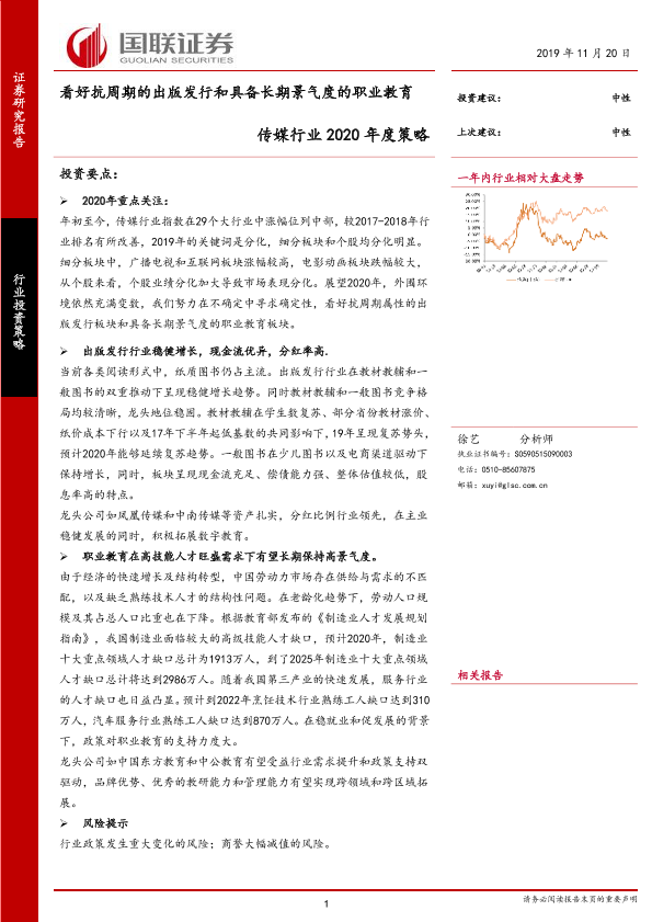 【国联证券】【20191120】传媒行业2020年度策略:看好抗周期的出版发行和具备长期景气度的职业教育-22页