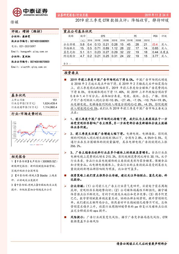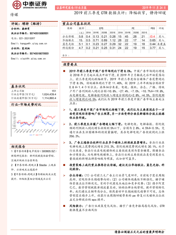 【中泰证券】【20191124】2019前三季度CTR数据点评:降幅收窄,静待回暖-9页