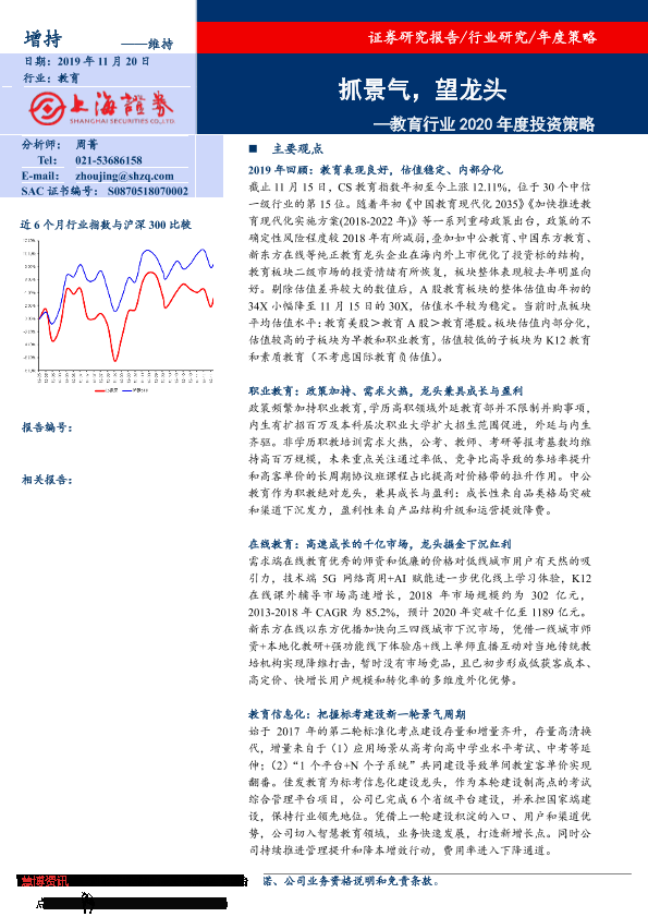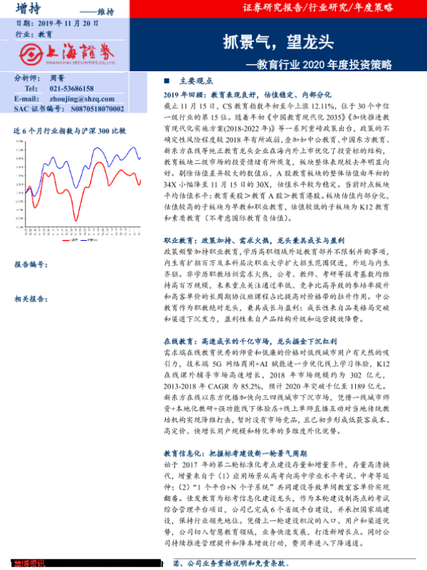 【上海证券】【20191120】教育行业2020年度投资策略:抓景气,望龙头-36页