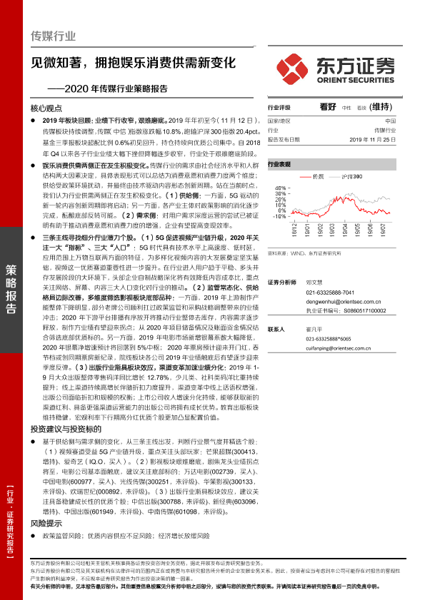 【东方证券】【20191125】2020年传媒行业策略报告:见微知著,拥抱娱乐消费供需新变化-42页