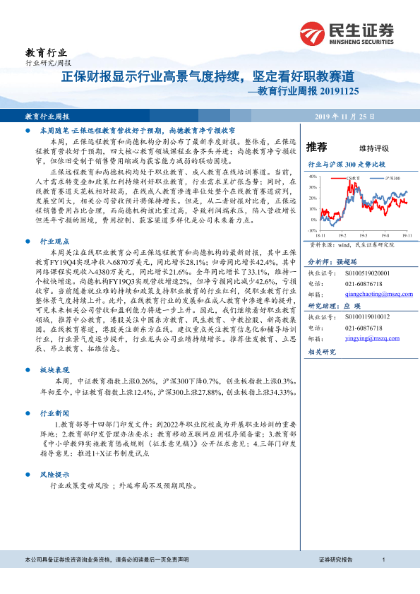 【民生证券】【20191125】教育行业周报:正保财报显示行业高景气度持续,坚定看好职教赛道-12页
