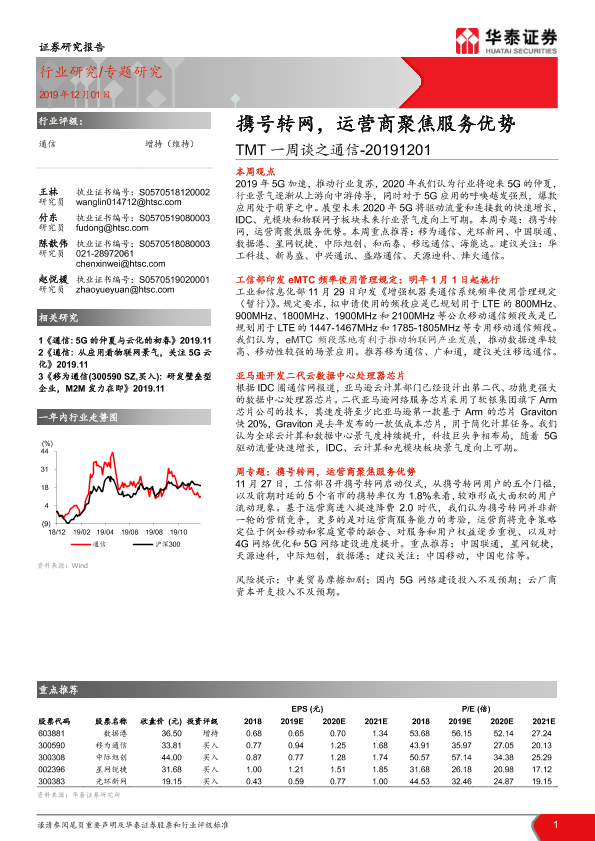 【华泰证券】【20191201】TMT一周谈之通信:携号转网,运营商聚焦服务优势-15页