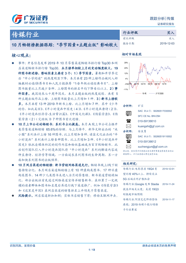 【广发证券】【20191203】传媒行业10月畅销榜数据跟踪:“季节因素+主题出版”影响较大-13页