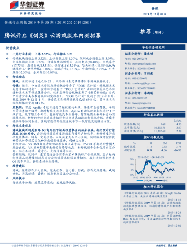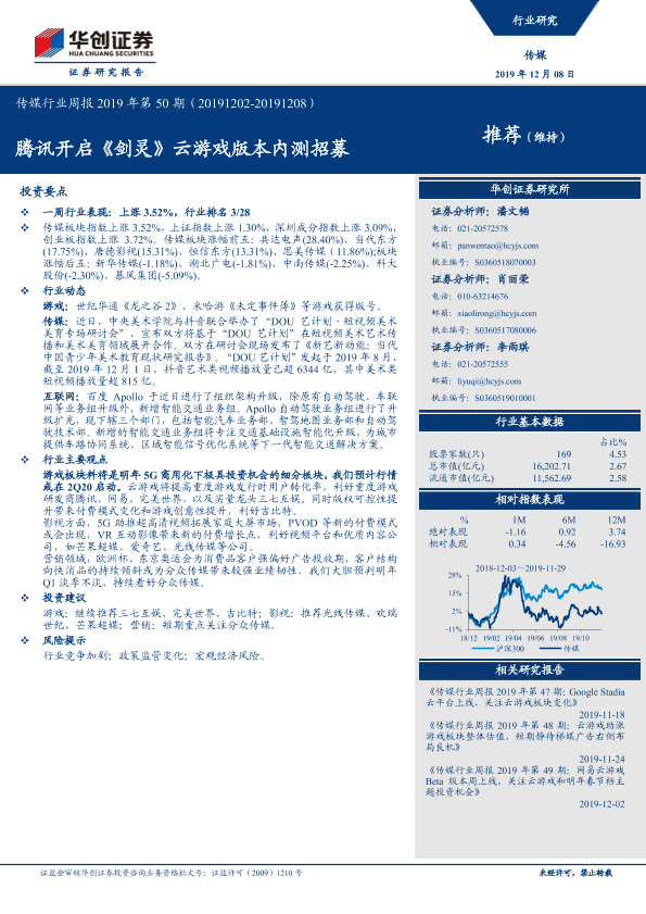 【华创证券】【20191208】传媒行业周报2019年第50期:腾讯开启《剑灵》云游戏版本内测招募-16页