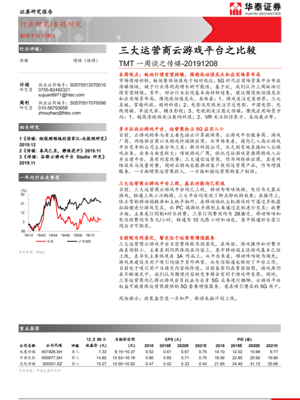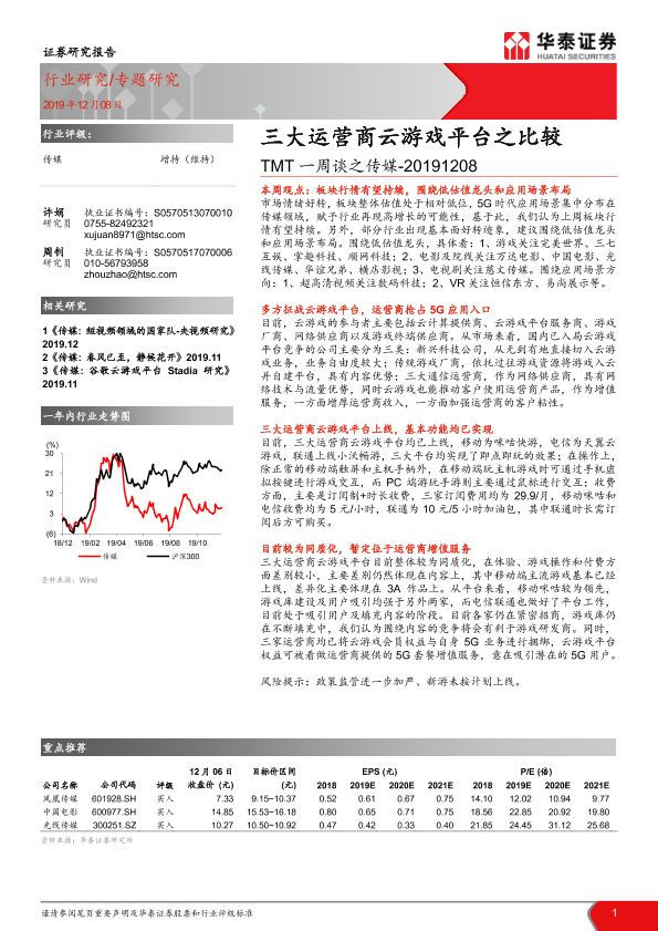 【华泰证券】【20191208】TMT一周谈之传媒:三大运营商云游戏平台之比较-15页