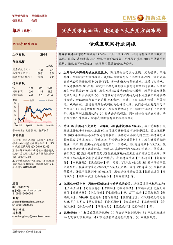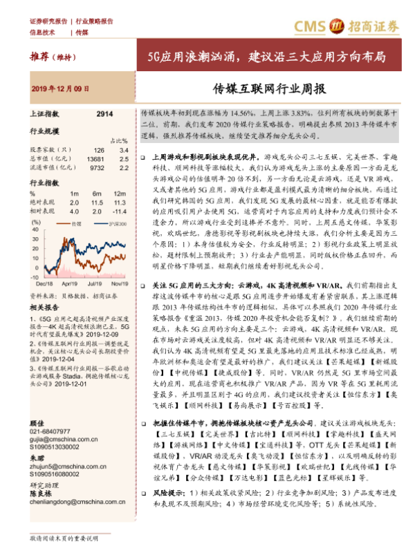 【海通证券】【20191209】20191209-招商证券-传媒互联网行业周报:5G应用浪潮汹涌,建议沿三大应用方向布局-14页