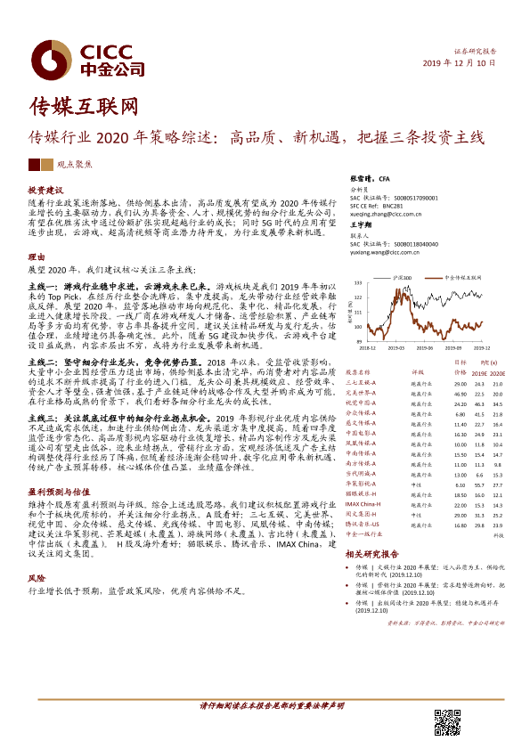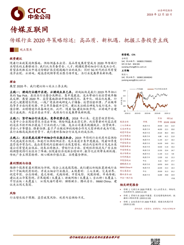 【中金公司】【20191210】传媒行业2020年策略综述:高品质、新机遇,把握三条投资主线-24页