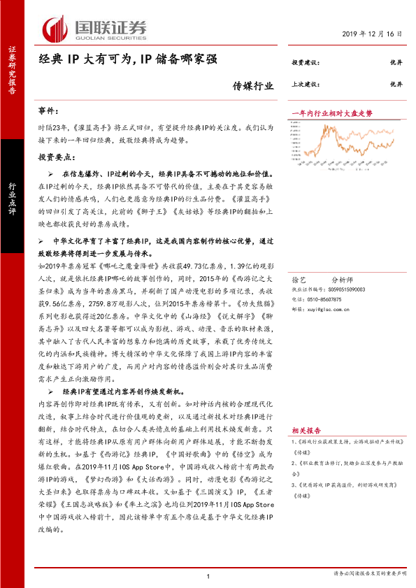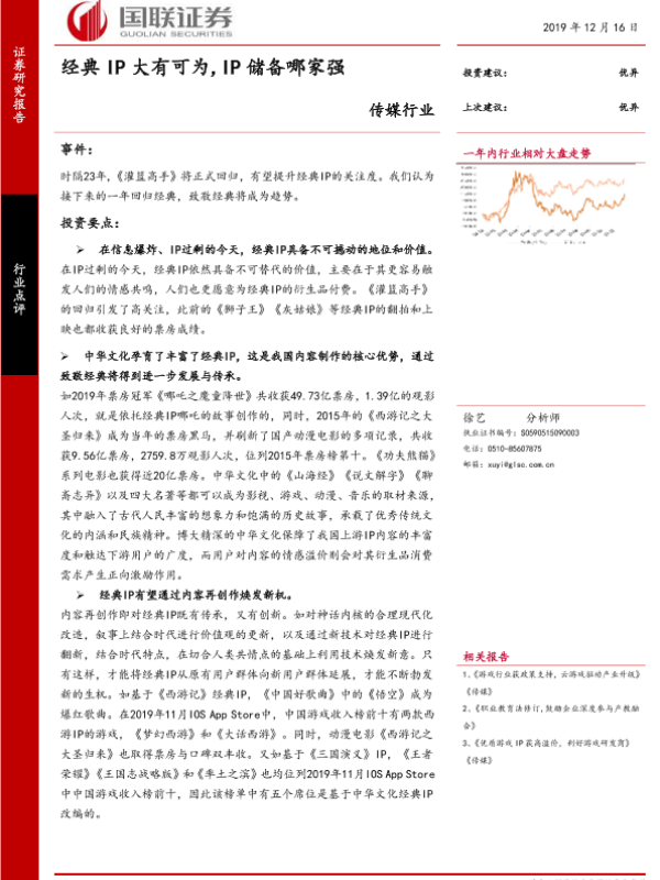 【国联证券】【20191216】传媒行业:经典IP大有可为,IP储备哪家强-5页