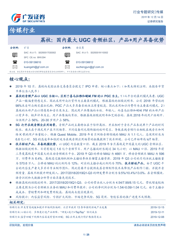 【广发证券】【20191216】荔枝:国内最大UGC音频社区,产品+用户具备优势-25页