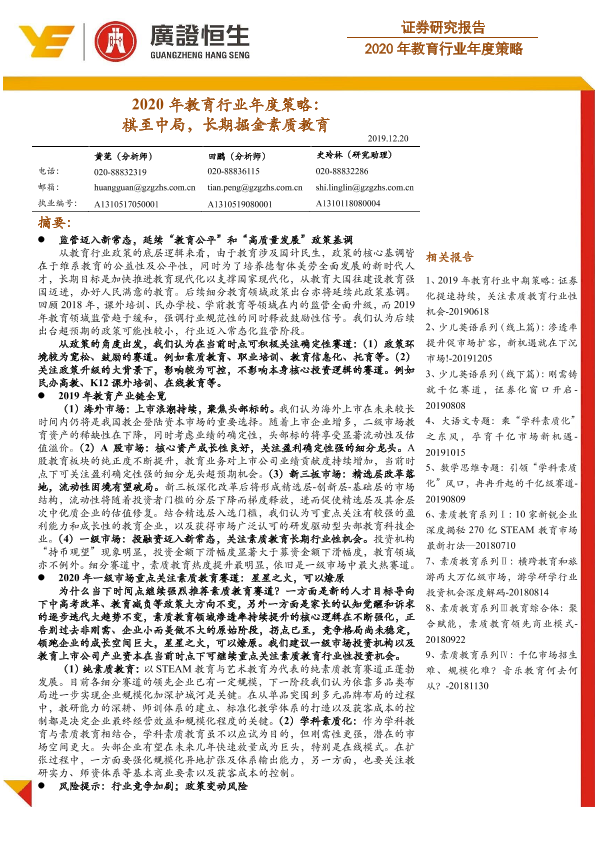【广证恒生】【20191220】2020年教育行业年度策略:棋至中局,长期掘金素质教育-47页