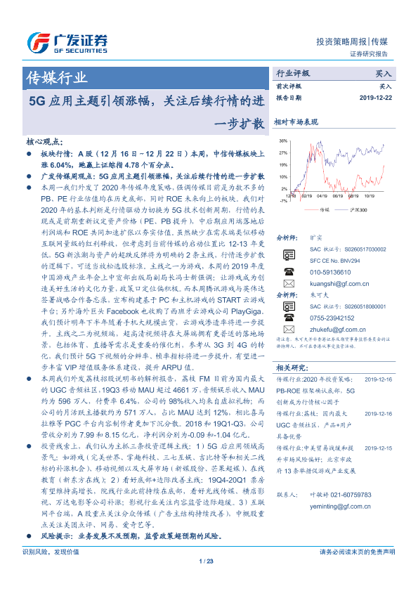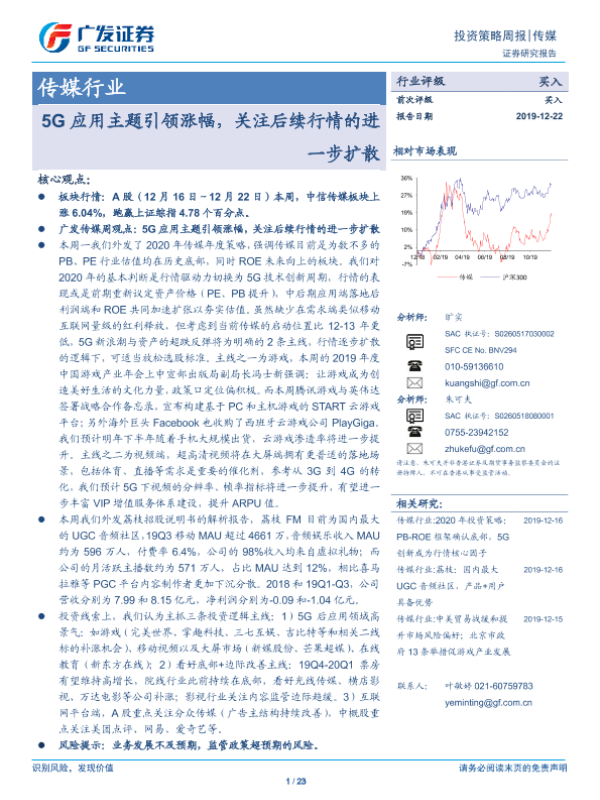 【广发证券】【20191222】20191222-广发证券-传媒行业投资策略周报:5G应用主题引领涨幅,关注后续行情的进一步扩散-23页