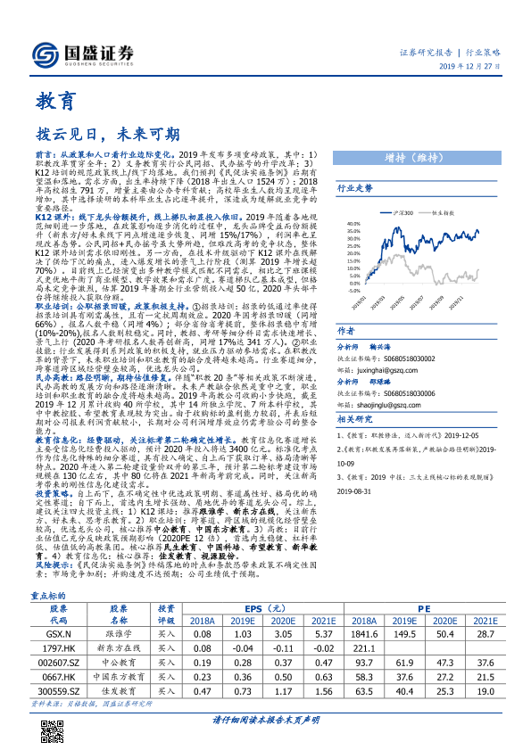 【国盛证券】【20191227】教育行业策略:拨云见日,未来可期-38页