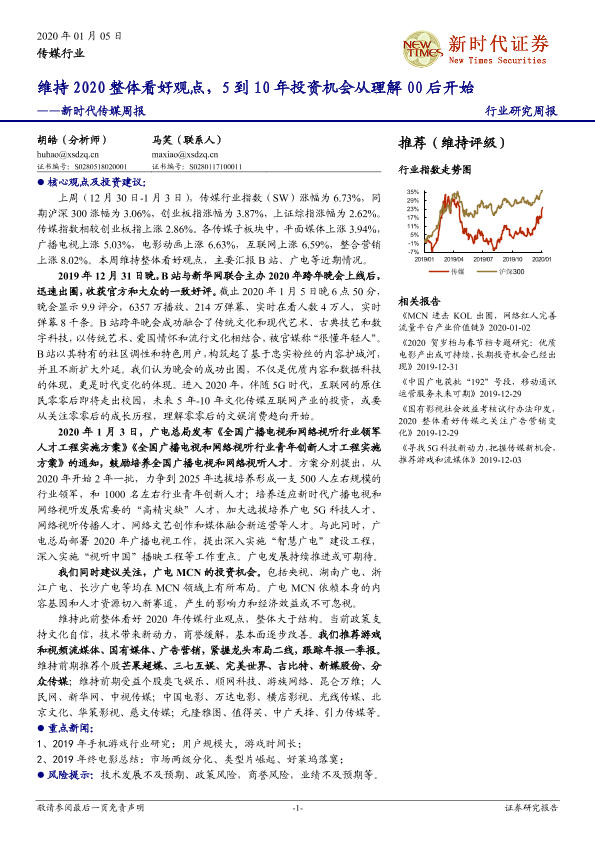 【新时代证券】【20200105】新时代传媒周报:维持2020整体看好观点,5到10年投资机会从理解00后开始-15页
