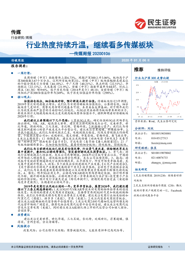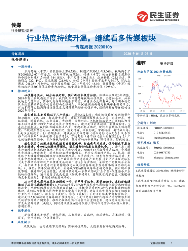【民生证券】【20200106】20200106-民生证券-传媒周报:行业热度持续升温,继续看多传媒板块-20页