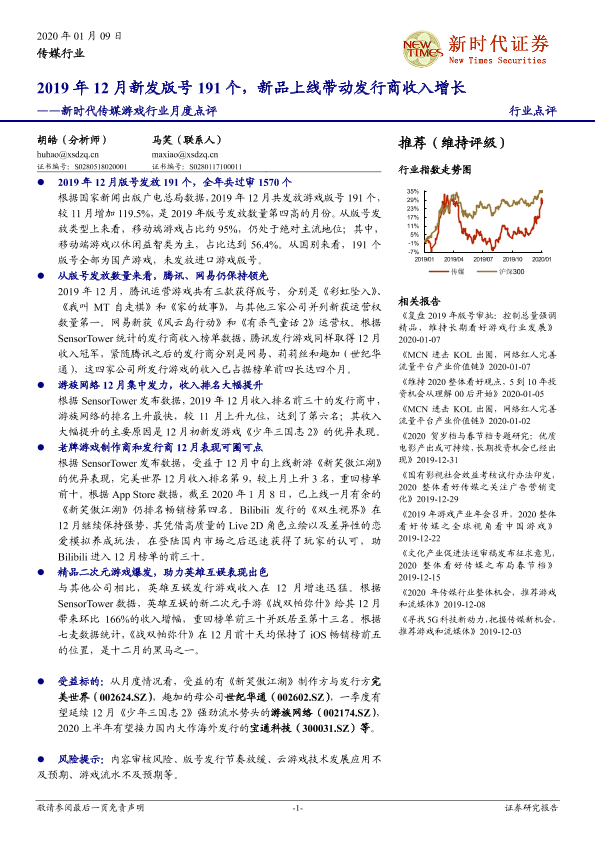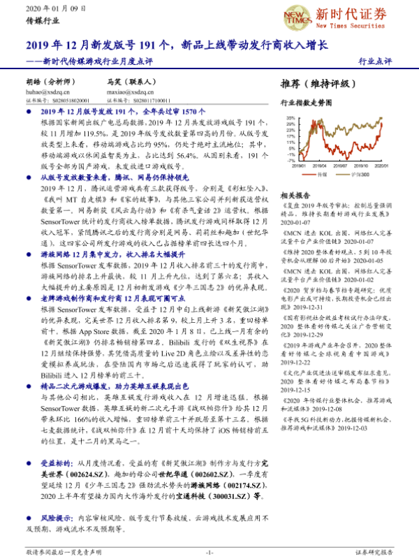 【新时代证券】【20200109】2019年12月新发版号191个,新品上线带动发行商收入增长-3页