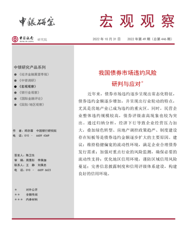 【中国银行研究院】【20221031】我国债券市场违约风险研判与应对-18页