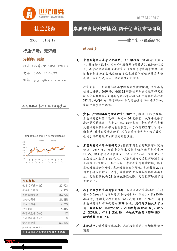【世纪证券】【20200115】教育行业跟踪研究:素质教育与升学挂钩,两千亿培训市场可期-8页
