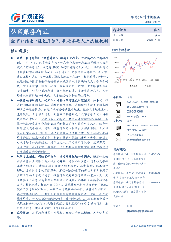 【广发证券】【20200116】教育部推出“强基计划”,优化高校人才选拔机制-10页