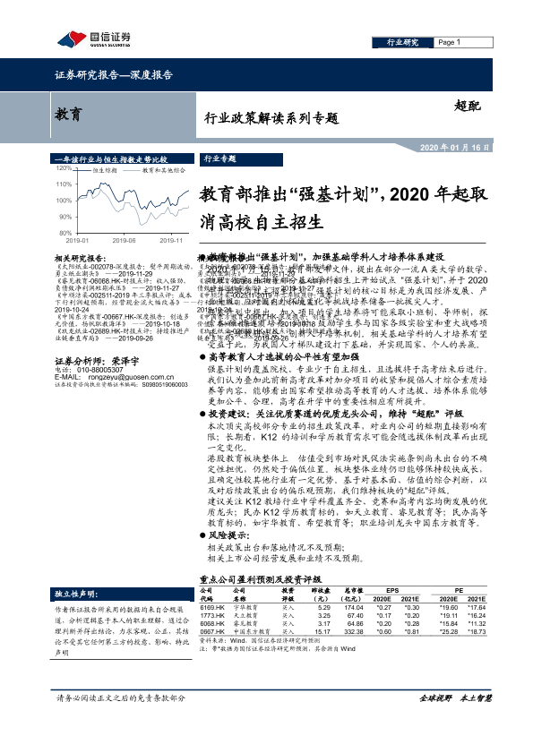 【国信证券】【20200116】教育部推出“强基计划”,2020年起取消高校自主招生-17页