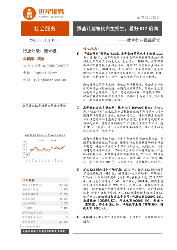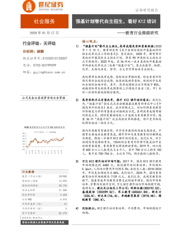 【世纪证券】【20200117】教育行业跟踪研究:强基计划替代自主招生,看好K12培训-7页