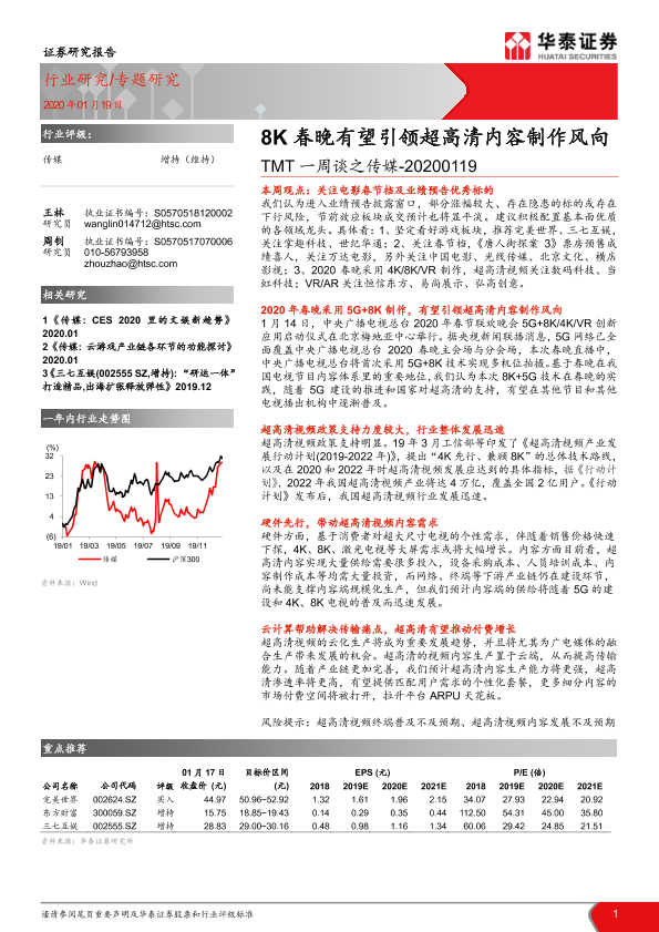 【华泰证券】【20200119】TMT一周谈之传媒:8K春晚有望引领超高清内容制作风向-11页