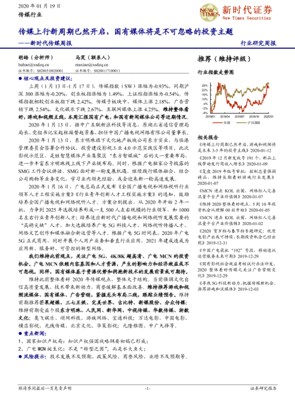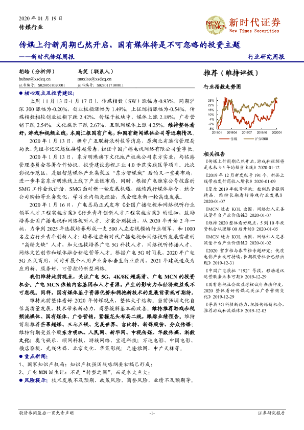 【新时代证券】【20200119】新时代传媒周报:传媒上行新周期已然开启,国有媒体将是不可忽略的投资主题-16页