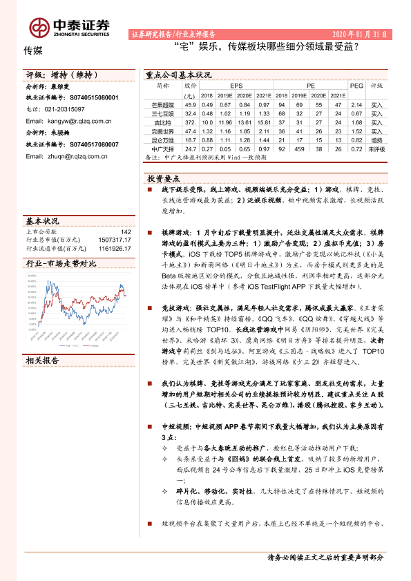 【中泰证券】【20200131】“宅”娱乐,传媒板块哪些细分领域最受益?-7页