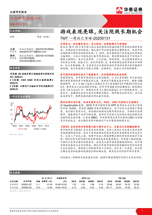 【华泰证券】【20200131】20200131-华泰证券-TMT一周谈之传媒:游戏表现亮眼,关注院线长期机会-11页