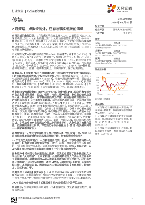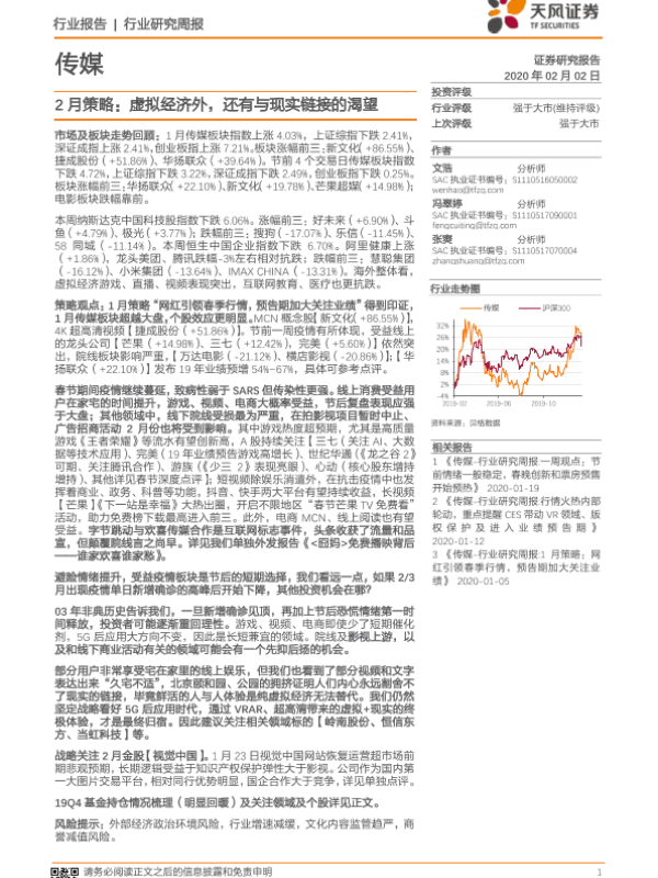 【天风证券】【20200202】20200202-天风证券-传媒行业研究周报:2月策略:虚拟经济外,还有与现实链接的渴望-26页