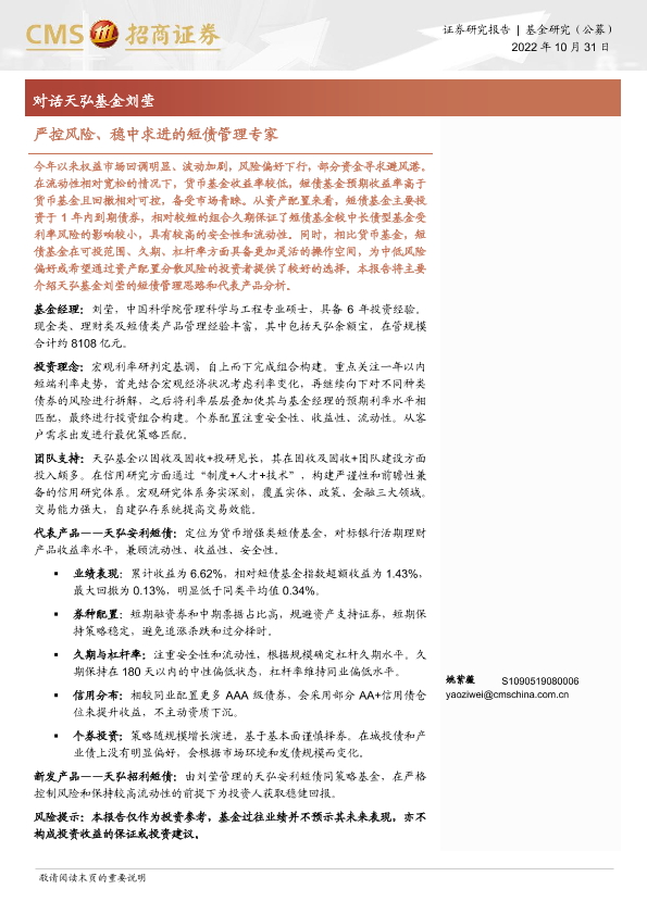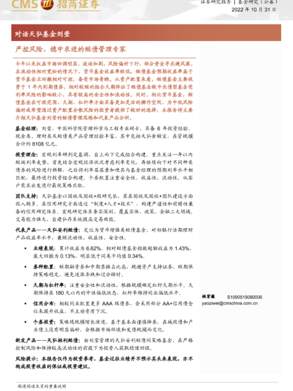 【海通证券】【20221031】对话天弘基金刘莹:严控风险、稳中求进的短债管理专家-17页