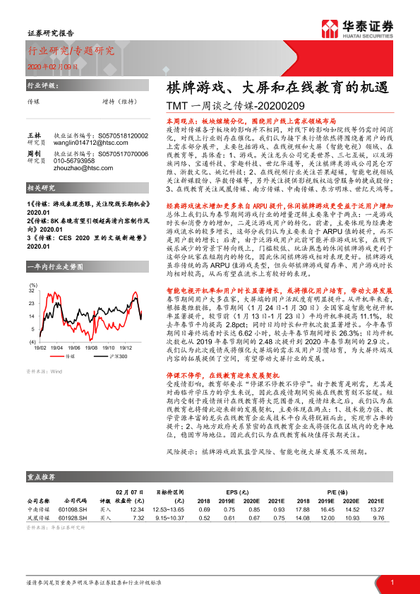 【华泰证券】【20200209】TMT一周谈之传媒:棋牌游戏、大屏和在线教育的机遇-11页