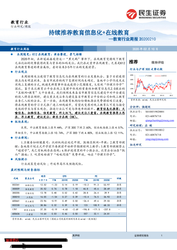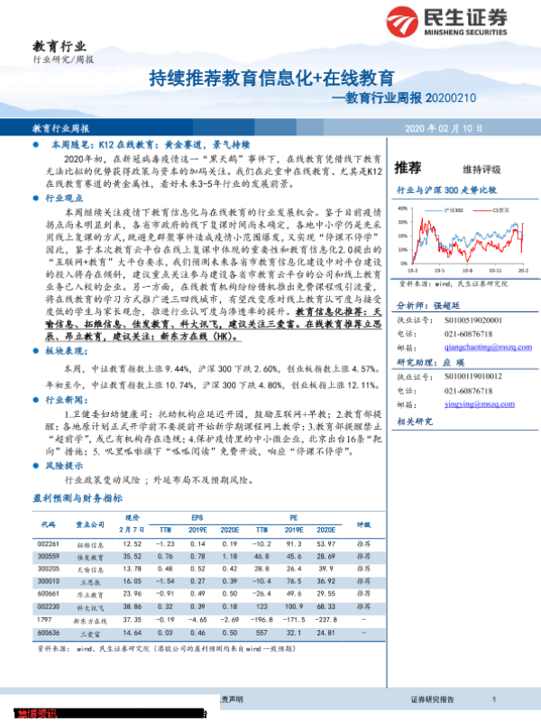 【民生证券】【20200210】20200210-民生证券-教育行业周报:持续推荐教育信息化+在线教育-12页