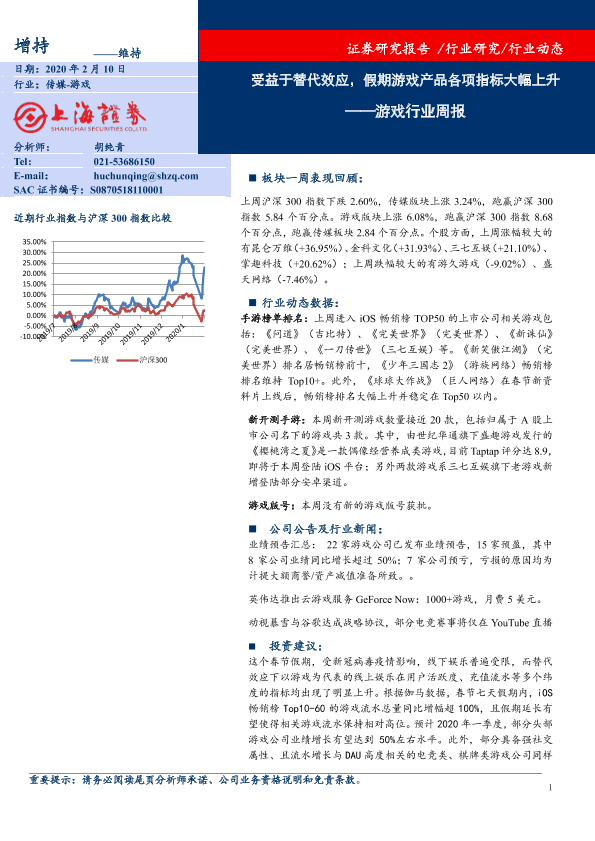 【上海证券】【20200210】20200210-上海证券-游戏行业周报:受益于替代效应,假期游戏产品各项指标大幅上升-9页