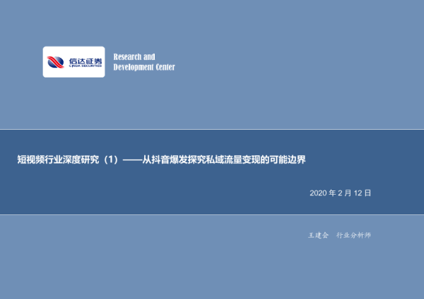 【信达证券】【20200212】短视频行业深度研究(1)——从抖音爆发探究私域流量变现的可能边界-85页