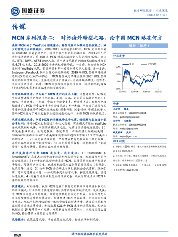 【国盛证券】【20200216】MCN系列报告二:对标海外转型之路,论中国MCN路在何方-25页