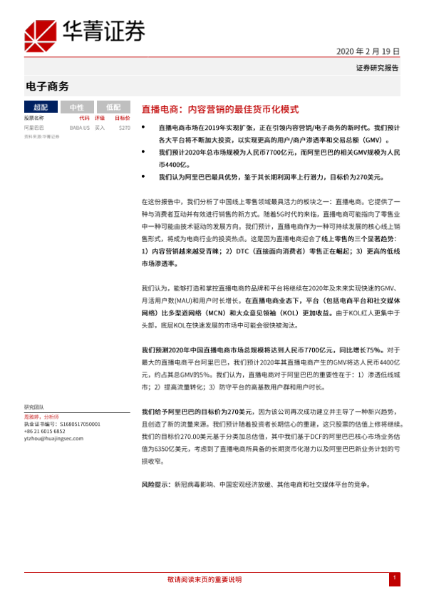 【华兴证券】【20200219】直播电商:内容营销的最佳货币化模式-4页