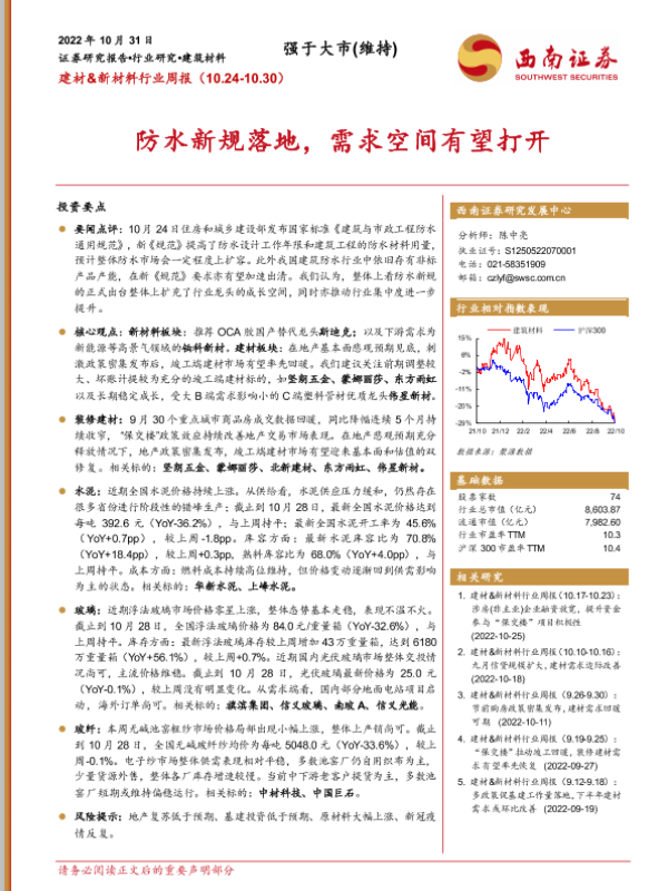 【西南证券】【20221031】建材&新材料行业周报:防水新规落地,需求空间有望打开-20页