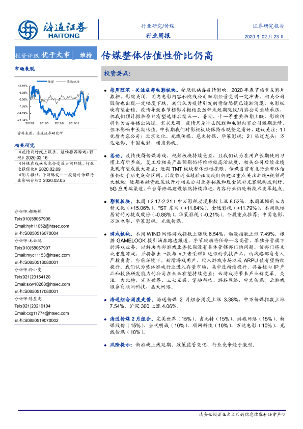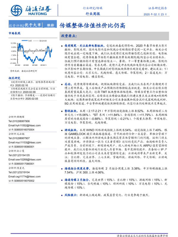 【海通证券】【20200223】20200223-海通证券-传媒行业周报:传媒整体估值性价比仍高-9页