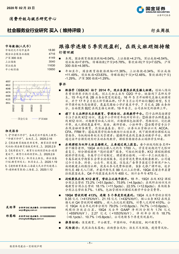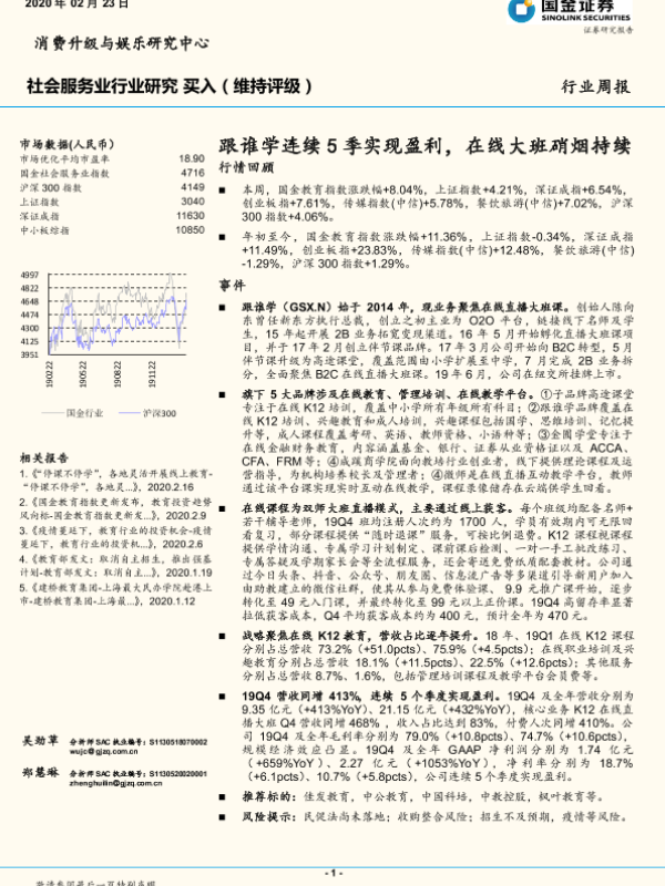 【国金证券】【20200223】社会服务业行业周报:跟谁学连续5季实现盈利,在线大班硝烟持续-10页