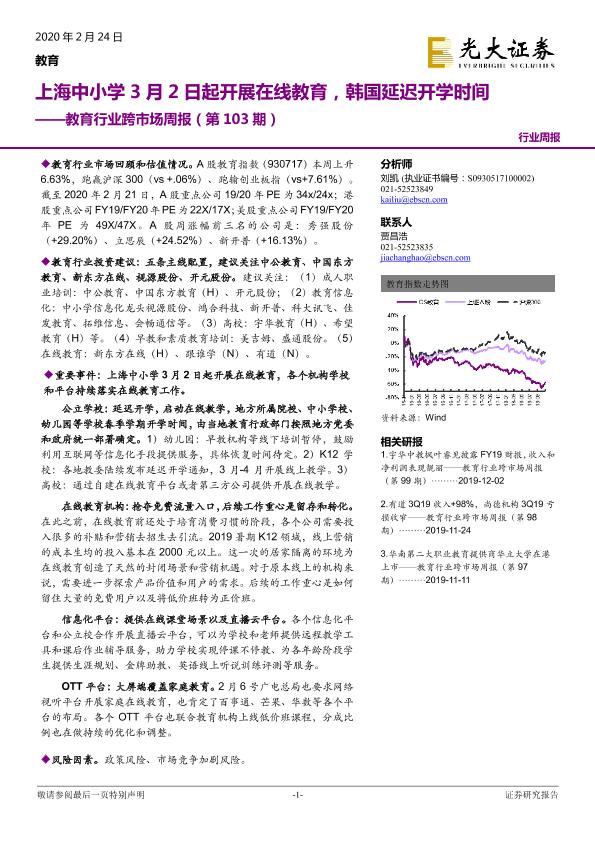 【光大证券】【20200224】教育行业跨市场周报(第103期):上海中小学3月2日起开展在线教育,韩国延迟开学时间-13页