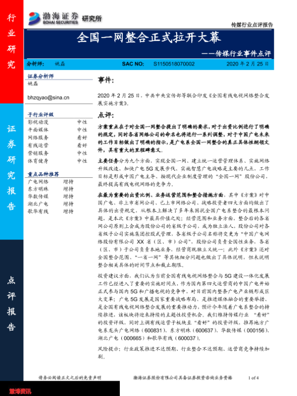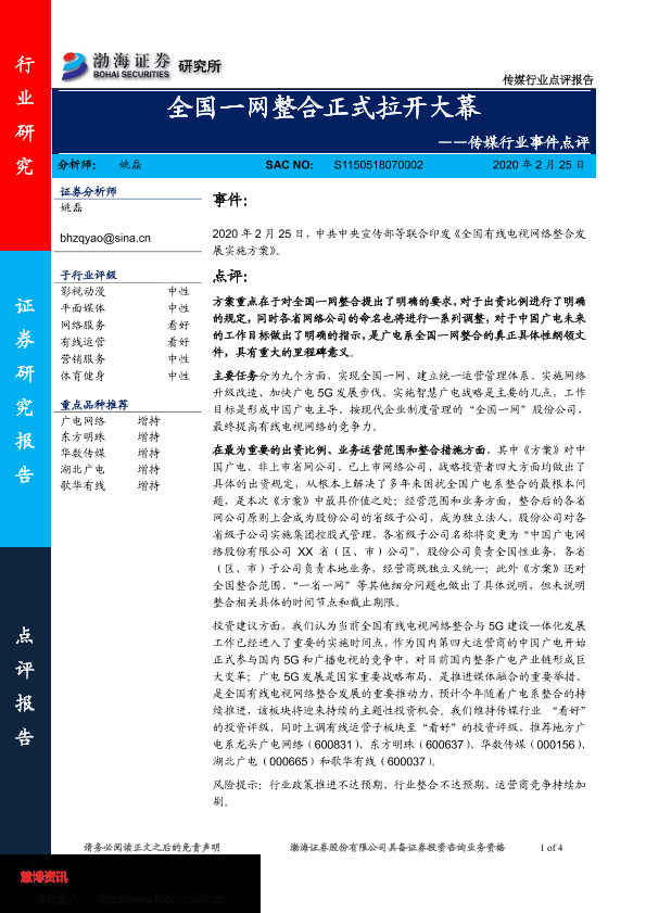 【渤海证券】【20200225】全国一网整合正式拉开大幕-4页