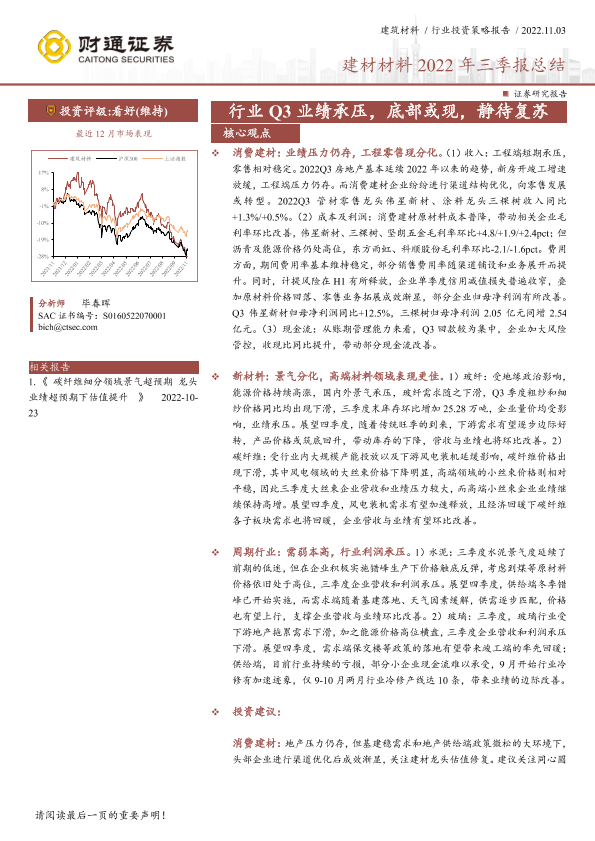 【财通证券】【20221103】建材材料行业2022年三季报总结:行业Q3业绩承压,底部或现,静待复苏-39页