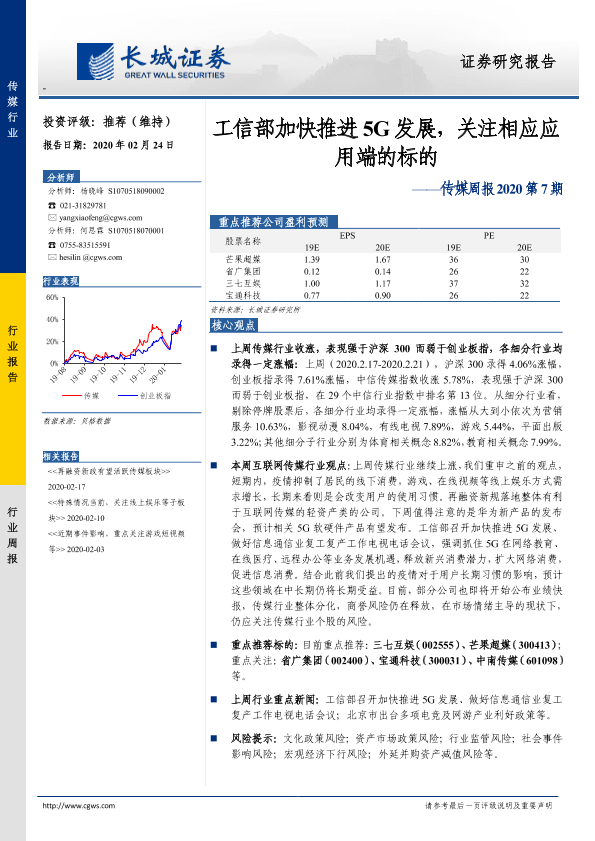 【长城证券】【20200224】传媒周报2020第7期:工信部加快推进5G发展,关注相应应用端的标的-15页